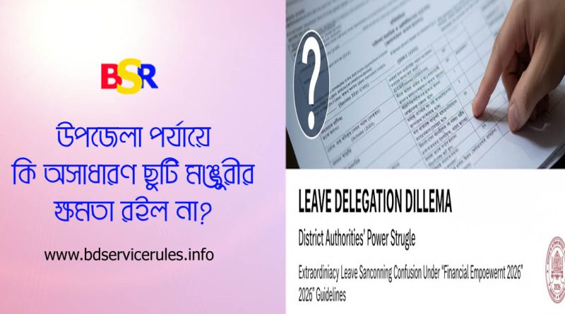 আর্থিক ক্ষমতা অর্পণ ২০২৬ । জেলা পর্যায়ে নিয়োগকারী কর্তৃপক্ষের অসাধারণ ছুটি মঞ্জুরি কখন?