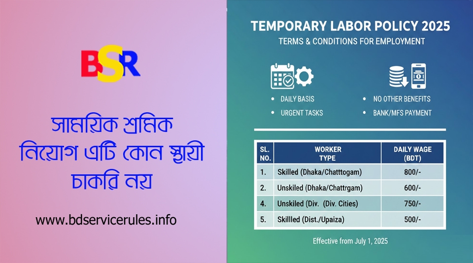দৈনিক মজুরি ভিত্তিতে শ্রমিক নিয়োগের বিজ্ঞপ্তি ২০২৫ । সাময়িক শ্রমিক নিয়োজিতকরণ নীতিমালা ২০২৫ মোতাবেক কি শর্তে নিয়োগ দেয়া হয়?