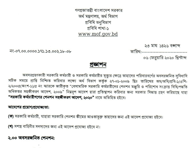 ইহা ছাড়া ঐ তারিখে যে সকল কন্যাগণ বা মৃত পুত্রের কন্যাগণ অবিবাহিত / তালাকপ্রাপ্ত/বিধবা ছিলেন তাহারা আনুতোষিক ও পারিবারিক মাসিক পেনশন পাইবেন। পেনশন পরবর্তী যে তারিখে বা সময়েই মঞ্জুর করা হউক না কেন তাহারা আনুতোষিক ও পারিবারিক মাসিক পেনশন প্রাপ্তিতে বঞ্চিত হইবে না।