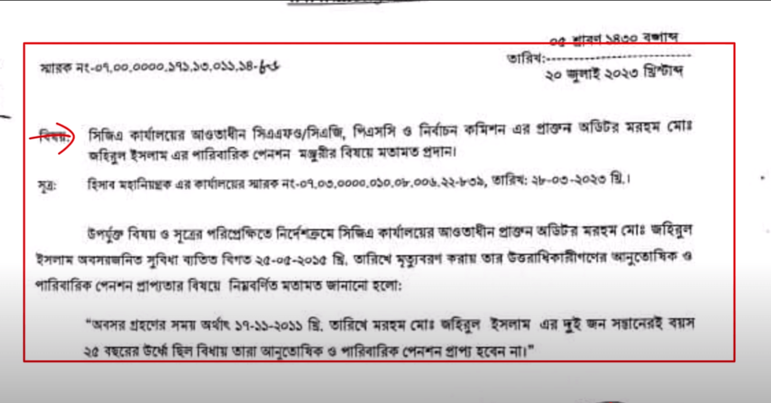 মৃত কর্মচারীর সন্তান আনুতোষিক পাবেন / ২৫ বছর উর্ধ্ব বয়সী ছেলে সন্তান মাসিক পেনশন পাবেন না । এ বিষয়ে সম্প্রতি আদেশ জারি করা হয়েছে।