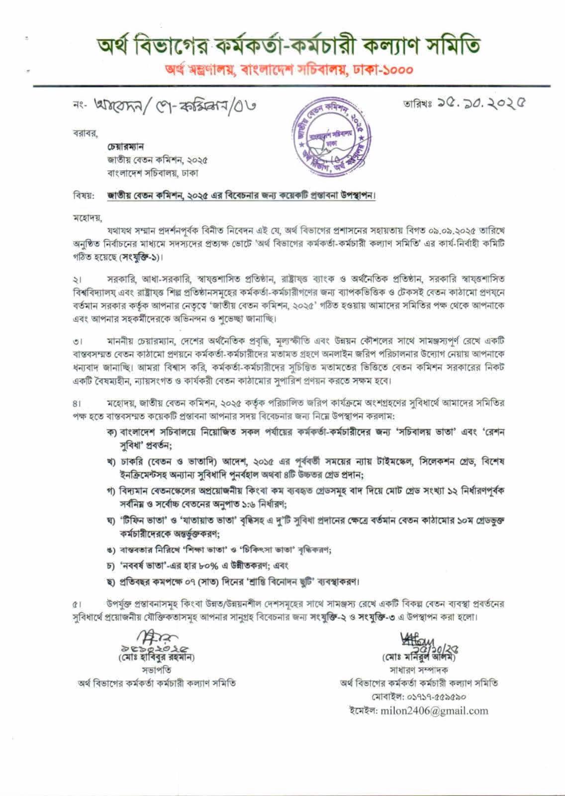 অর্থ বিভাগের কর্মকর্তা-কর্মচারী কল্যাণ সমিতির প্রস্তাবনা ২০২৫ । টিফিন ভাতা কমপক্ষে ৩ হাজার, নববর্ষ ভাতা মূল বেতনের ৮০% করার দাবি?