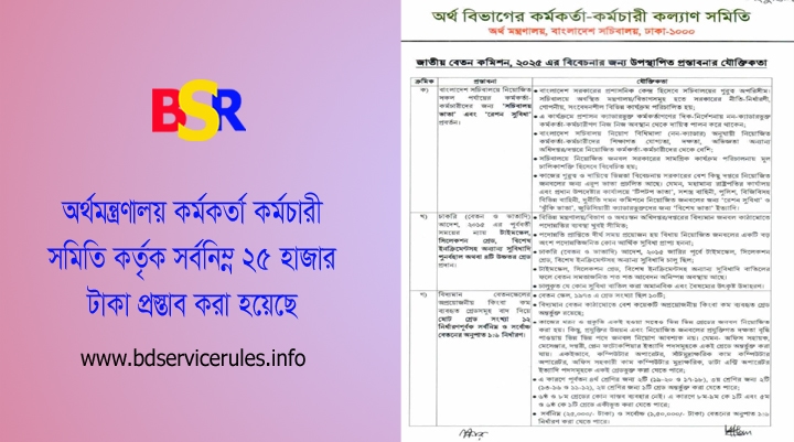 - সর্বনিম্ন বেতন: ২৫,০০০/- (পঁচিশ হাজার) টাকা নির্ধারণের প্রস্তাব করা হয়েছে।