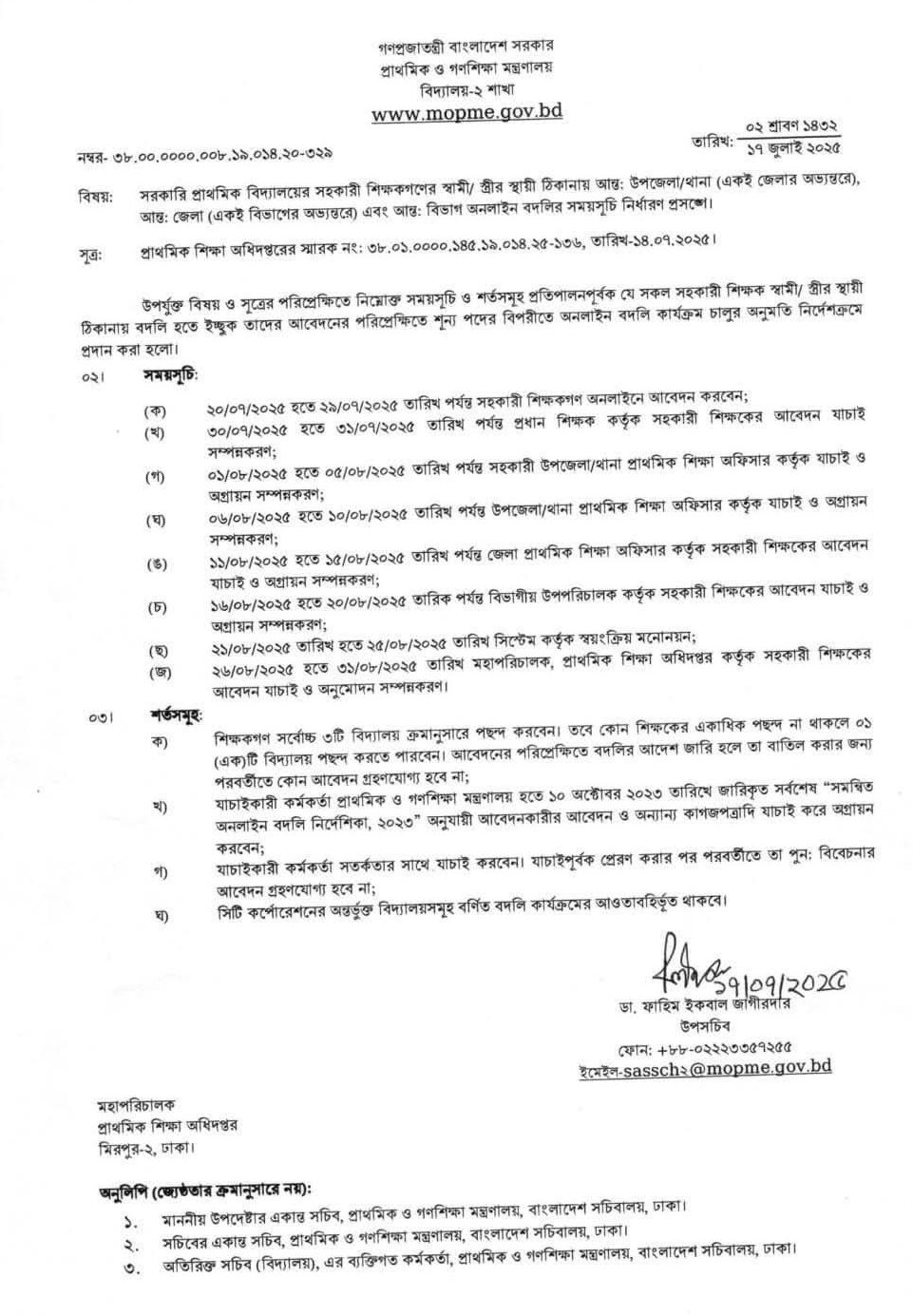 Teacher Online Transfer Schedule 2025 । স্বামী/ স্ত্রীর একই ঠিকানায় বদলির আবেদন করা যাবে?