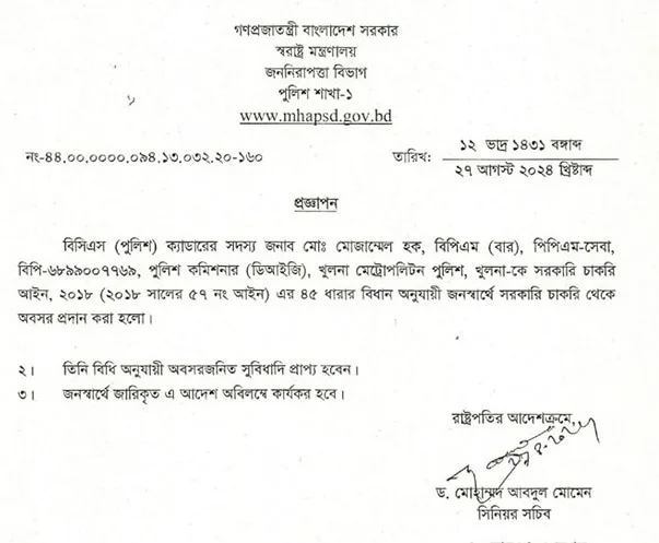 বাধ্যতামূলক অবসরের আদেশে কি উল্লেখ থাকে অবসর সুবিধার কথায়? হ্যাঁ। যদি শাস্তি হিসেবে বাধ্যতামূলক অবসর দেয় তবে ছুটি নগদায়ন সহ কিছু সুবিধা নাও পাওয়া যেতে পারে