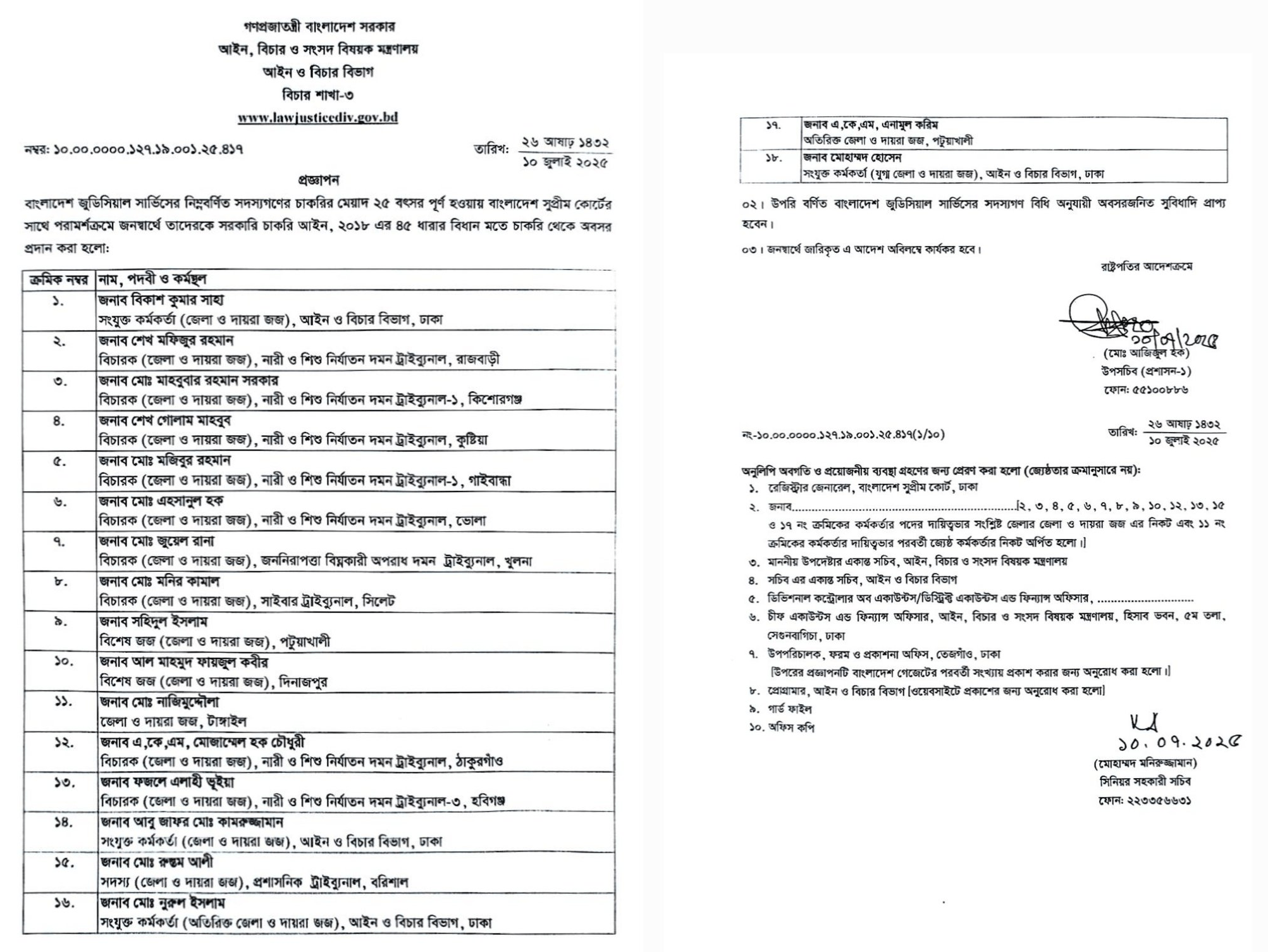 বিচারক বাধ্যতামূলক অবসর নিয়ম ২০২৫ । ২৫ বছর চাকরির মেয়াদ পূর্ণ সরকার কর্তৃক বাধ্যতামূলক অবসর?