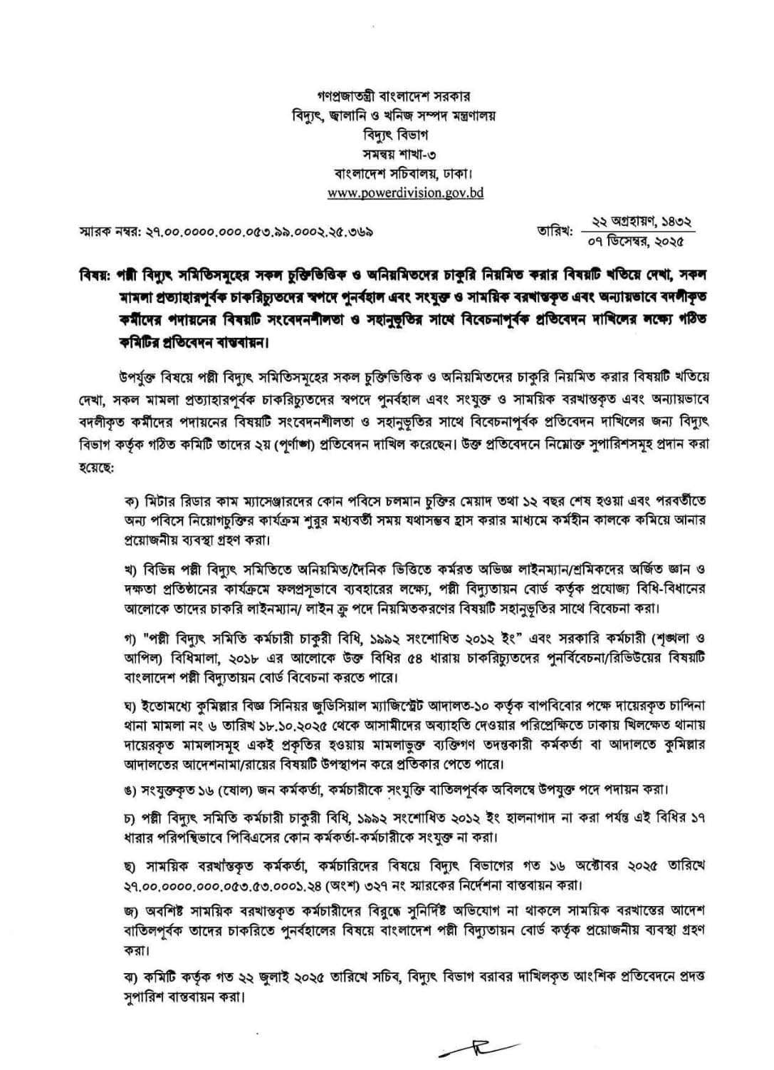 ⚡️ পল্লী বিদ্যুৎ কর্মীদের জন্য স্বস্তির খবর: কমিটির সুপারিশ বাস্তবায়নের নির্দেশ