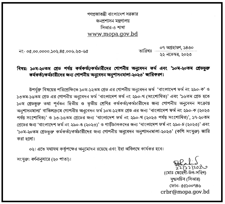 গোপনীয় অনুবেদন অনুশাসনমালা ২০২৫ pdf । গোপনীয় অনুবেদন অনুশাসনমালা ২০২৫ । নতুন এসিআর ফরম ডাউনলোড