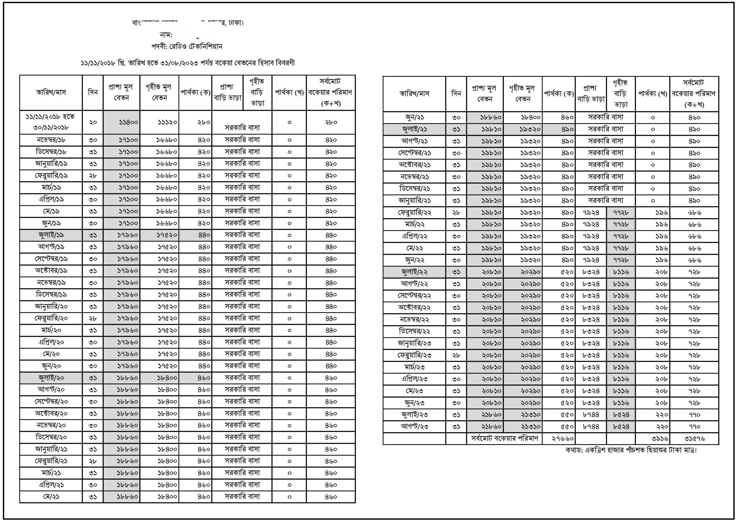 সরকারি কর্মচারীদের বকেয়া বেতন ভাতাদি হিসাব ২০২৫ । কিভাবে ৫ বছরের বকেয়া বেতন বিল হিসাব করতে হয়?