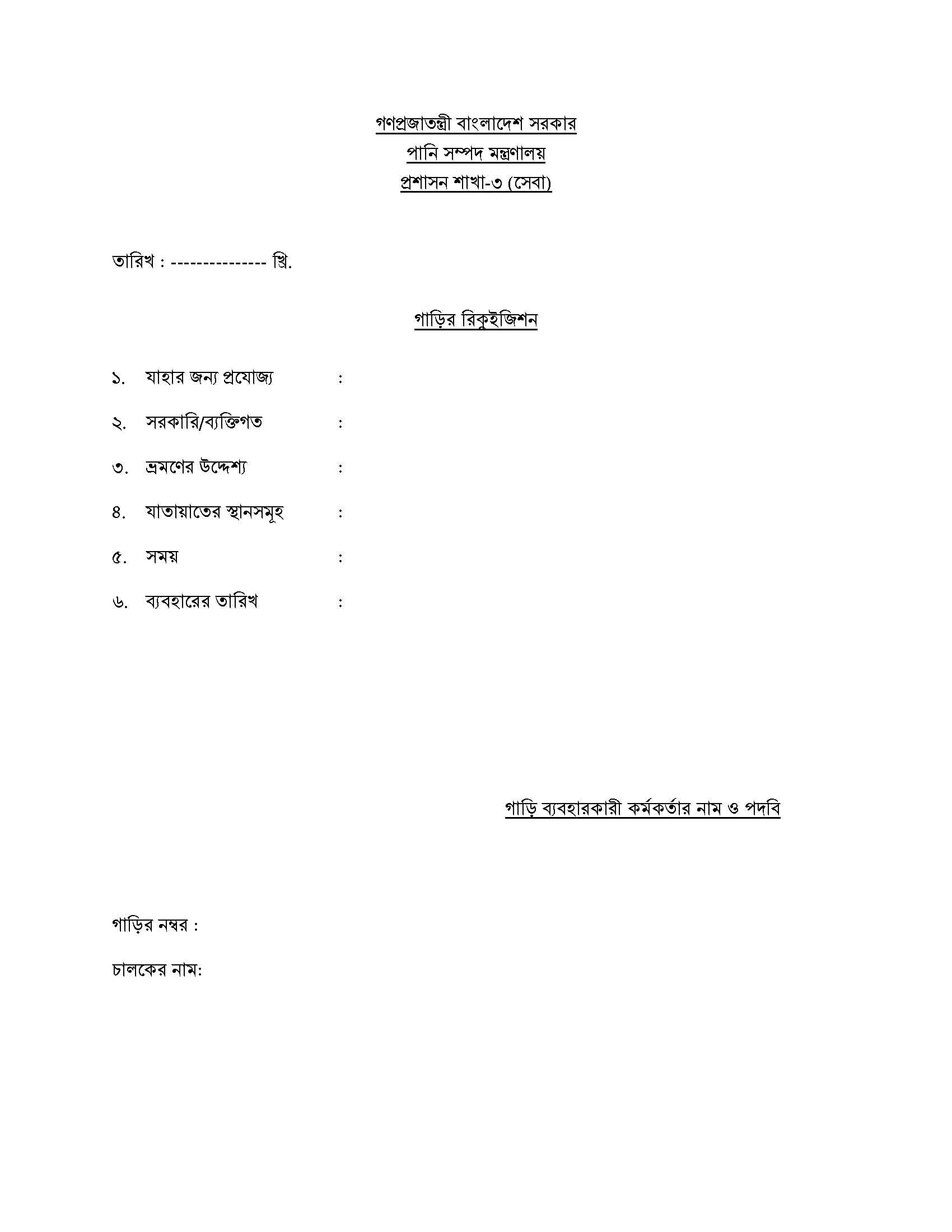 গাড়ী রিকুইজিশন । যে ফর্মে আবেদন করে গাড়ি ব্যবহার করবেন