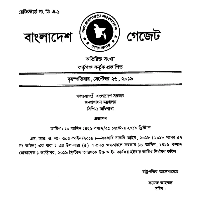 বিস্তারিত জানতে সরকারি চাকরি আইন, ২০১৮ দেখে নিতে পারেন: ডাউনলোড