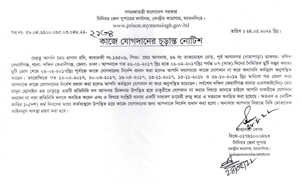 ন্যূনতম ১৫ দিন ছুটি ভোগ করতে হবে । ছুটি শেষে যোগদান না করলে কি বিভাগীয় মামলা হয়?
