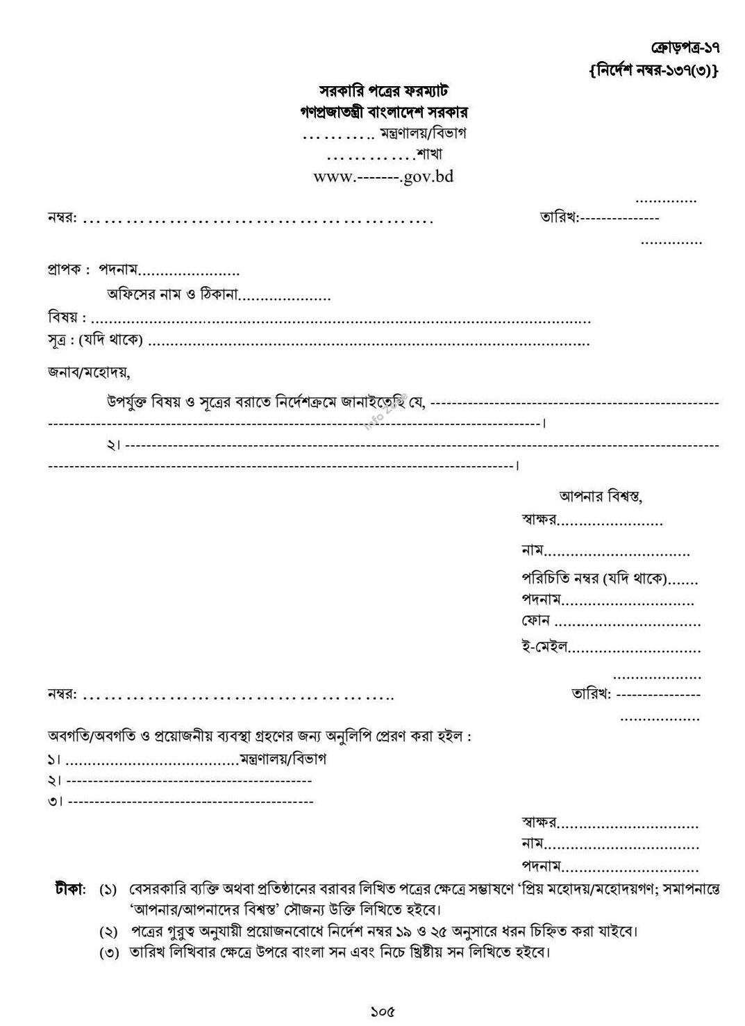 ১. সরকারি অফিসে ব্যবহৃত বিভিন্ন পত্রের ফরম্যাট ও নমুনা