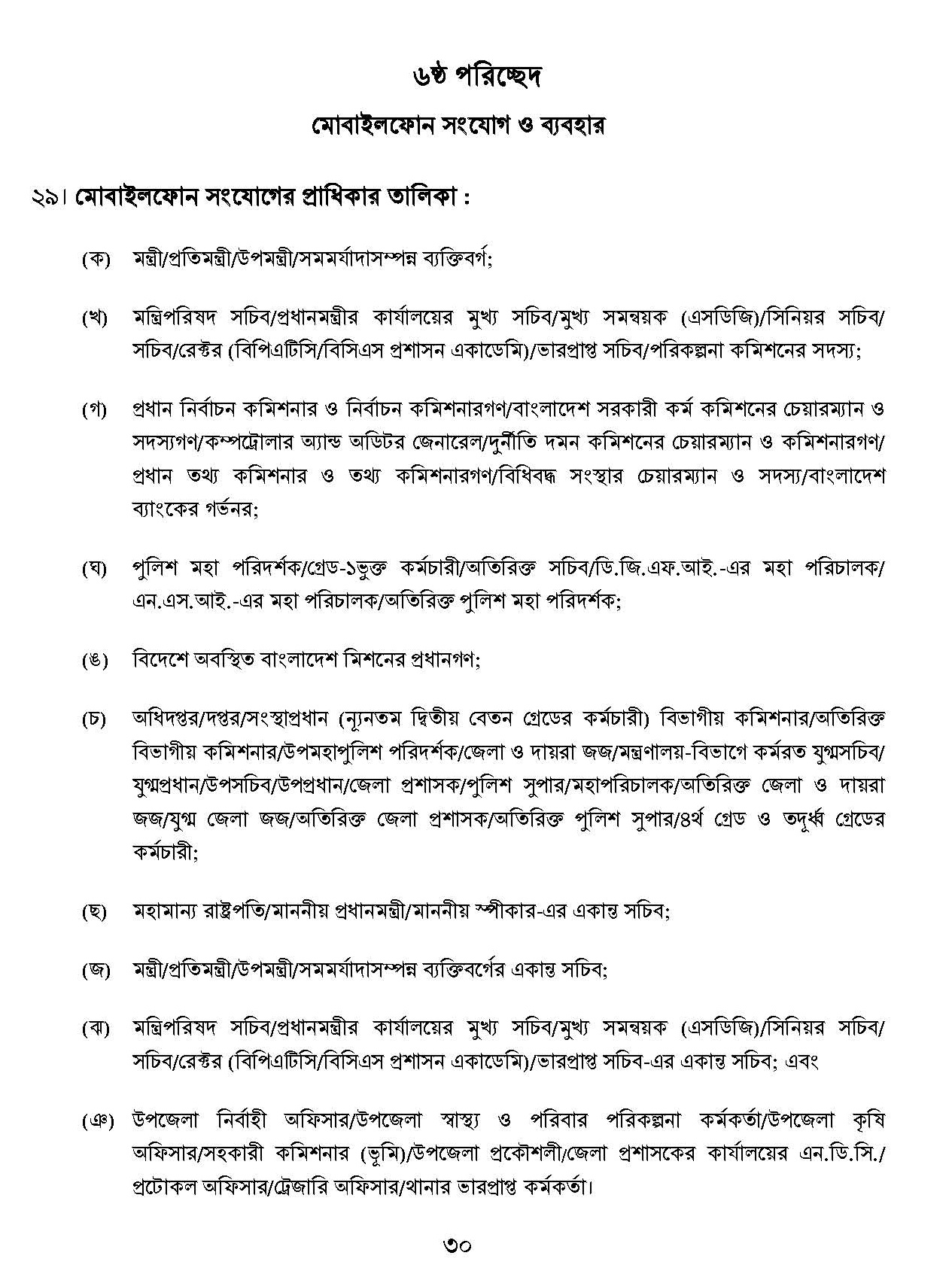 সরকারি টেলিফোন, সেলুলার, ফ্যাক্স ও ইন্টারনেট নীতিমালা, ২০১৮ অনুসারে প্রাধিকার দেখে নিন