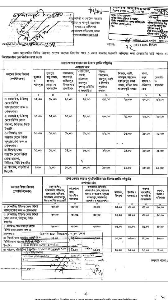 ঢাকা মহানগরীর বিভিন্ন এলাকা, দেশের অন্যান্য বিভাগীয় শহর ও জেলা সদরের সরকারি অফিসের জন্য বেসরকারি মালিকানাধীন বাড়ি ভাড়ার হারের বিষয়ে গৃহায়ন গণপূর্ত মন্ত্রণালয় কর্তৃক স্মারক নম্বর-২৫.০০.০০০০.০১৪.২২.০১৬.০০-৫১৪; তারিখ: ১২ নভেম্বর ২০১৮ খ্রিষ্টাব্দে জারীকৃত আদেশ অনুযায়ী প্রতি বর্গফুট স্পেসের নির্ধারিত ভাড়ার হারের অতিরিক্ত ১০% বৃদ্ধির আর্থিক ক্ষমতা সংশ্লিষ্ট দপ্তর/ সংস্থার নিয়ন্ত্রণকারী প্রশাসনিক মন্ত্রণালয়কে নির্দেশক্রমে অর্পণ করা হল।