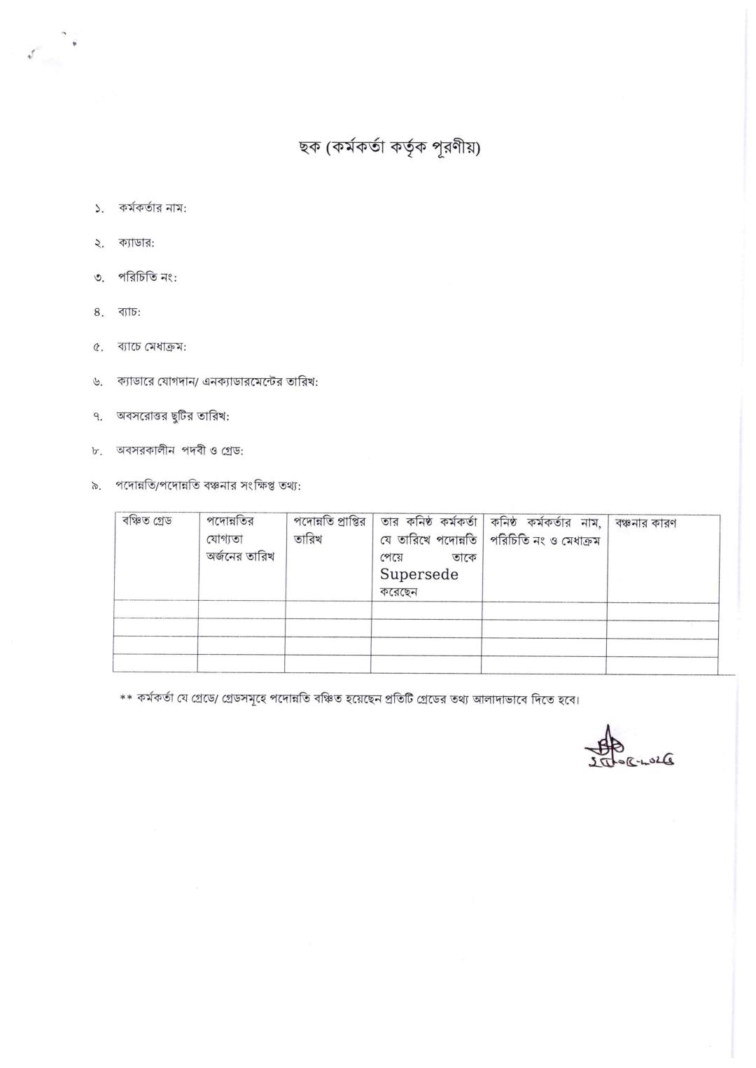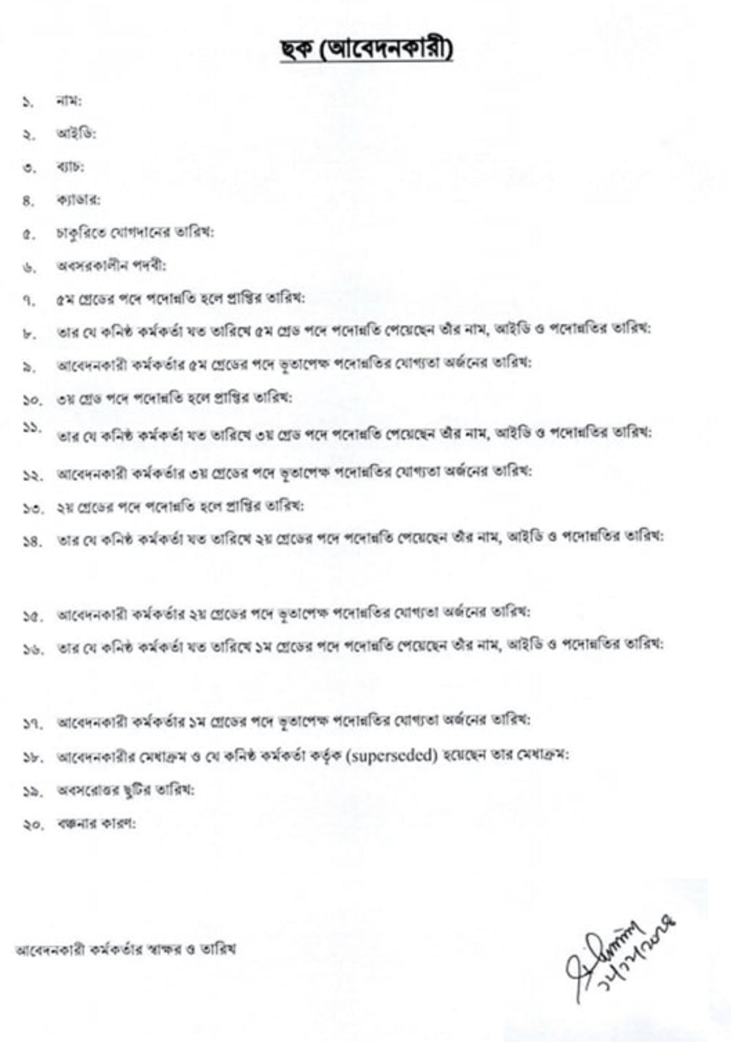 - আবেদনকারী কর্মকর্তার স্বাক্ষর ও তারিখ