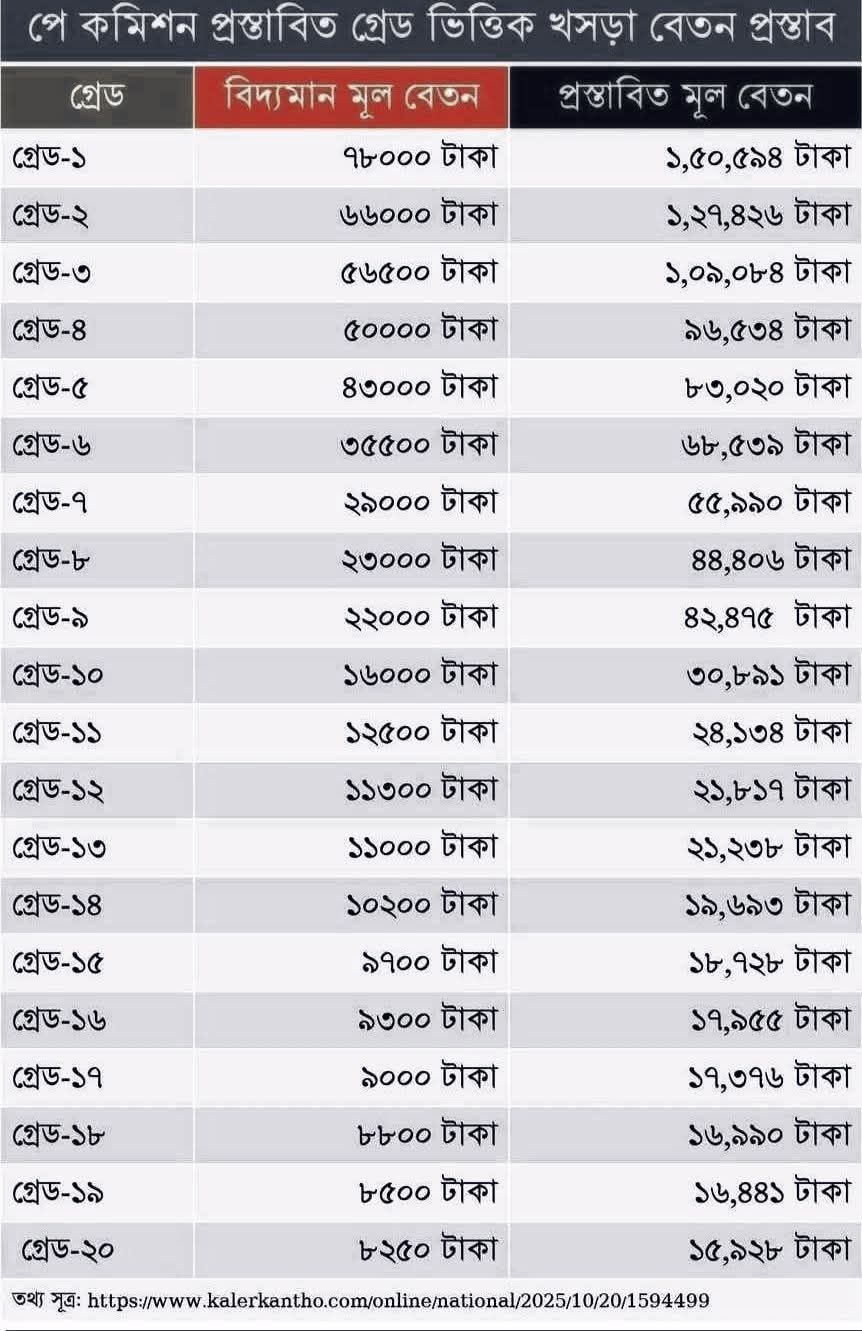 প্রস্তাবিত পে-স্কেলে তীব্র অসন্তোষ ২০২৫ । প্রথম ও সর্বনিম্ন গ্রেডে বেতনের বিশাল ফারাক, নূন্যতম বেতন ২৫,০০০ টাকার দাবি
