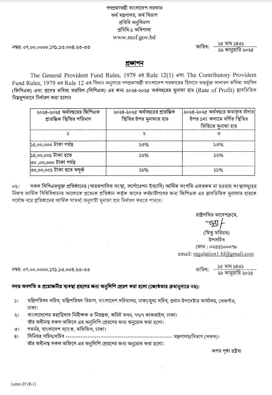 জিপিএফ মুনাফার হার ২০২৫ পিডিএফ