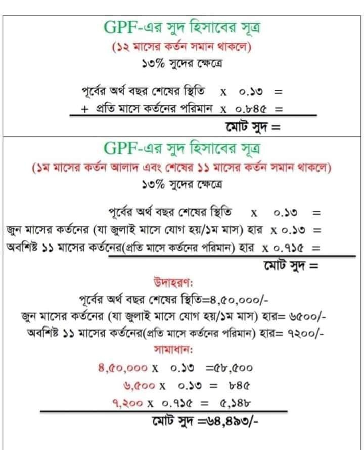 সূত্র: জিপিএফ সুদ নির্ণয়