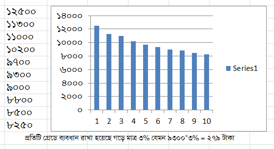 দেখুন যদি কর্মচারীদের গ্রেড ব্যবধান কর্মকর্তাদের গ্রেড ব্যবধান সমান হত অর্থাৎ ২০% হত তাহলে কিভাবে সবাই বার্ষিক বেতন বৃদ্ধিতে লাভবান হতো! আসুন ২০% ব্যবধান রেখে কর্মচারীদের বেতন কাঠামো দাড় করাই।