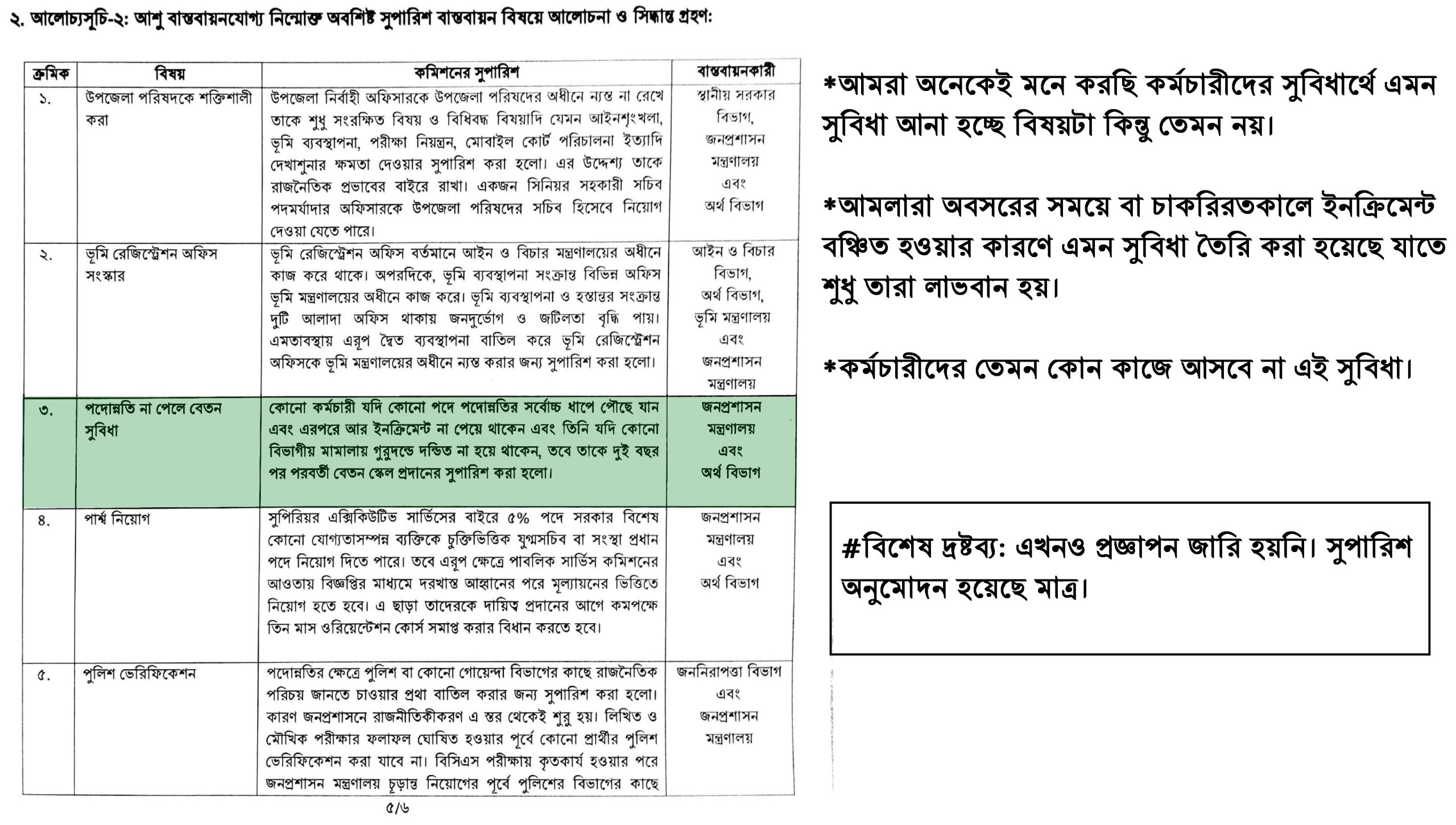 জনপ্রশাসন সংস্কার কমিশনের ইনক্রিমেন্ট প্রাপ্তির জন্য উচ্চতর গ্রেডের সুপারিশে কর্মচারীগণ লাভবান হতে পারবে না-তারা একটি পূর্নাঙ্গ ইনক্রিমেন্ট পাবে না এবং পরবর্তী আবার একই গ্যারাকলে আটকে যাবে-গ্রেড ব্যবধান সংস্কার করা না পর্যন্ত গ্রেড অনুসারে যে সুবিধাই দেয়া হবে তাতে কর্মচারীগণ ঠকে যাবে– ইনক্রিমেন্ট সিলিংয়ে পৌছে যাওয়াদের উচ্চতর গ্রেড ২০২৫