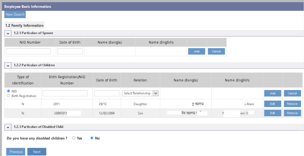 মাস্টার ডাটায় Employee Basic Information গিয়ে নেক্সড এ গিয়ে বা পরবর্তী পৃষ্ঠায় গিয়ে সন্তানের জন্ম নিবন্ধন এন্ট্রি করতে হবে।