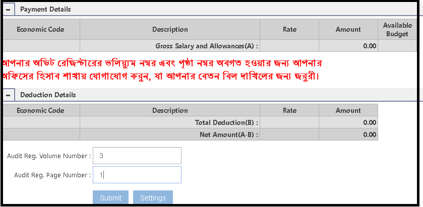 Noted that Audit Volume Number and page number you have to input which is collected from Accounts office.
