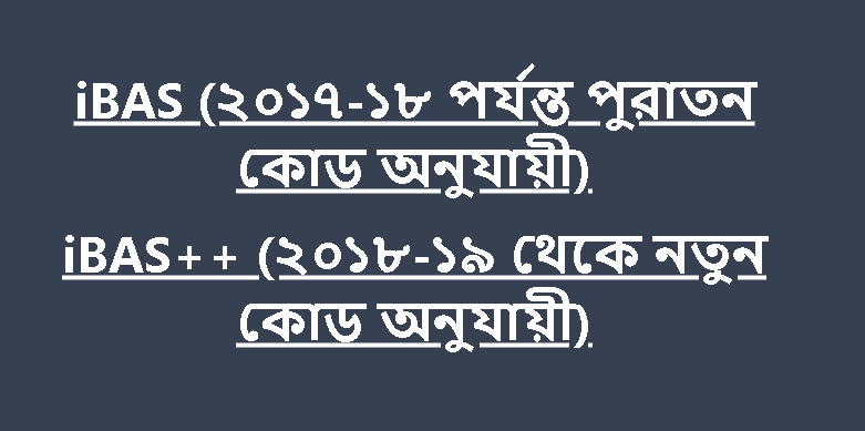 Reaching to this page, you have to click on ibas++ (২০১৮-১৯ থেকে নতুন কোড অনুযায়ী) লিংকটিতে। এখানে দুটি কোডের মডিউল রয়েছে। একটি ২০১৮-১৯ অর্থ বছরের পূর্বের অর্থনৈতিক কোড এর উপর ভিত্তি করে প্রস্তুত অন্যটি ডিজিটাল নতুন কোডের উপর ভিত্তি করে প্রনয়নকৃত।