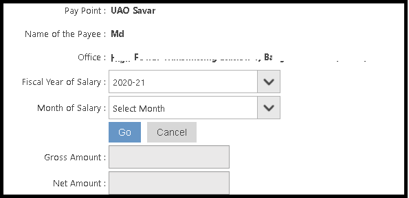 You have to just select fiscal year and month of salary manualy then Press Go. You will see your Gross amount and net amount of your monthly salary.