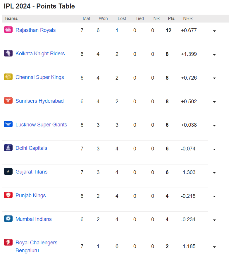 Caption: IPL Table Point 2024