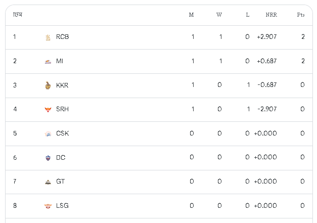 Indian Premier League 2026 । কলকাতা নাইট রাইডার্স এর টেবিল পয়েন্ট কত হল?