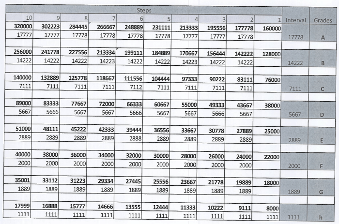 নিচের তালিকাটি হতে গ্রেড ব্যবধান ১-১০ গ্রেডে পাকিস্তানের পে স্কেলের মতই ২০% শতাংশ করা হয়েছে অন্য দিকে কর্মচারী তথা ১১-২০ গ্রেডের কর্মচারীদের ক্ষেত্রে গড়ে ২.৫% রাখা হয়েছে। এখানেও ১:১০ বেতন রেশিও অনুসরণ করা হয়েছে।