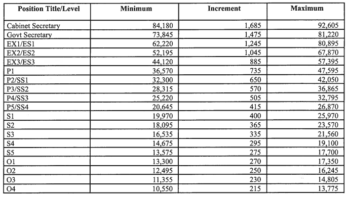 অর্থ মন্ত্রনালয় সরকারী কর্মচারীদের বেতন কাঠামো সংস্কার এবং বেতন সংশোধনের তফসিল -I এবং II হিসাবে ঘোষণা করা হয়েছে। জাতীয় পরিষদ ও জাতীয় পরিষদ সদস্য: চতুর্থ সংসদের সদস্যদের নির্বাচনের মাধ্যমে এটি কার্যকর হয়। বেসামরিক এবং অন্যান্য সরকারি কর্মচারী: ১ লা জুলাই ২০২৩ থেকে কার্যকর। বেতন কাঠামো স্থায়ী এবং পরিবর্তনশীল বেতন অন্তর্ভুক্ত করবে। মাসিক বেসিক পে (MBP), যা পোস্ট পরিষেবা সুবিধার গণনার জন্য প্রয়োগ করা হবে এবং অ-পেনশনযোগ্য মাসিক বেতন (NPMP) বোর্ড জুড়ে প্রযোজ্য বিদ্যমান ভাতা অন্তর্ভুক্ত করবে (বাড়ি ভাড়া ভাতা – HRA)। মাসিক পরিবর্তনশীল ক্ষতিপূরণ (MVC), যার মধ্যে সমস্ত ভাতা এবং ভাতার সমতুল্য নগদ অন্তর্ভুক্ত থাকবে এবং কর্মক্ষমতা ভিত্তিক প্রণোদনা (PBI), যেভাবে এবং কখন এটি চালু করা হয়। সর্বনিম্ন বেতন ১০,৫৫০ রুটি এবং সর্বোচ্চ ৮৪,১৮০ রুপি। ১ বাংলাদেশী টাকা সমান ০.৭০ ভারতীয় টাকা।