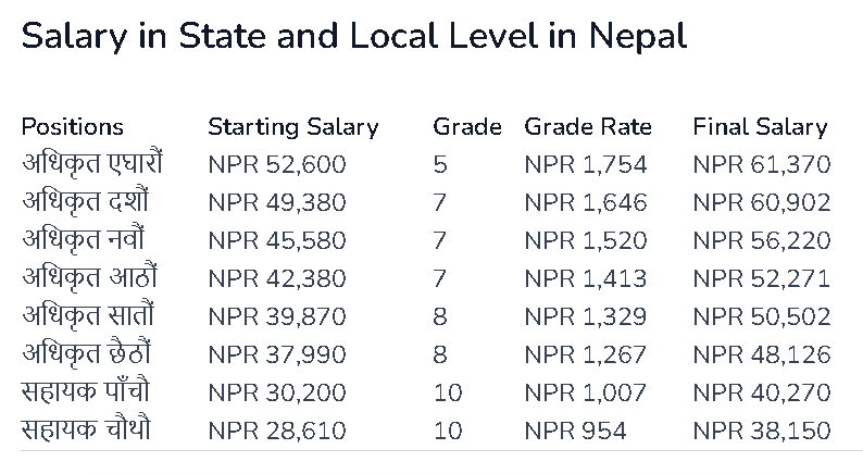 বাজেট বিবরণীতে কর্মচারীদের বেতন ১৫ শতাংশ বাড়ানোর ঘোষণা দেওয়া হয়েছিল। কিন্তু মন্ত্রনালয় কর্মকর্তাদের বেতন ২৪ শতাংশ বাড়ানোর প্রস্তাব তৈরি করে মন্ত্রিপরিষদে পাঠিয়েছিল মর্যাদার ক্রম অনুযায়ী সমন্বয় করার জন্য। কিন্তু এর বিরুদ্ধে আন্দোলন শুরু করেছে নয়া সুব্বাস। ১৫ শতাংশ বৃদ্ধির পর, মুখ্য সচিবের মাসিক বেতন ৬৭,১৪০ টাকা থেকে বেড়ে ৭৭,২১১ টাকা হবে এবং খারিদার ২৮৬১০ থেকে ৩২৯০২ টাকা হবে। পরবর্তীতে এটি সর্বনিম্ন ৩৮১৫০ টাকা করা হয় এবং সর্বোচ্চ ৬১,৩৭০ টাকা নির্ধারিত হয়। ১ বাংলাদেশী টাকা সমান ১.১২ নেপালি রুপি।