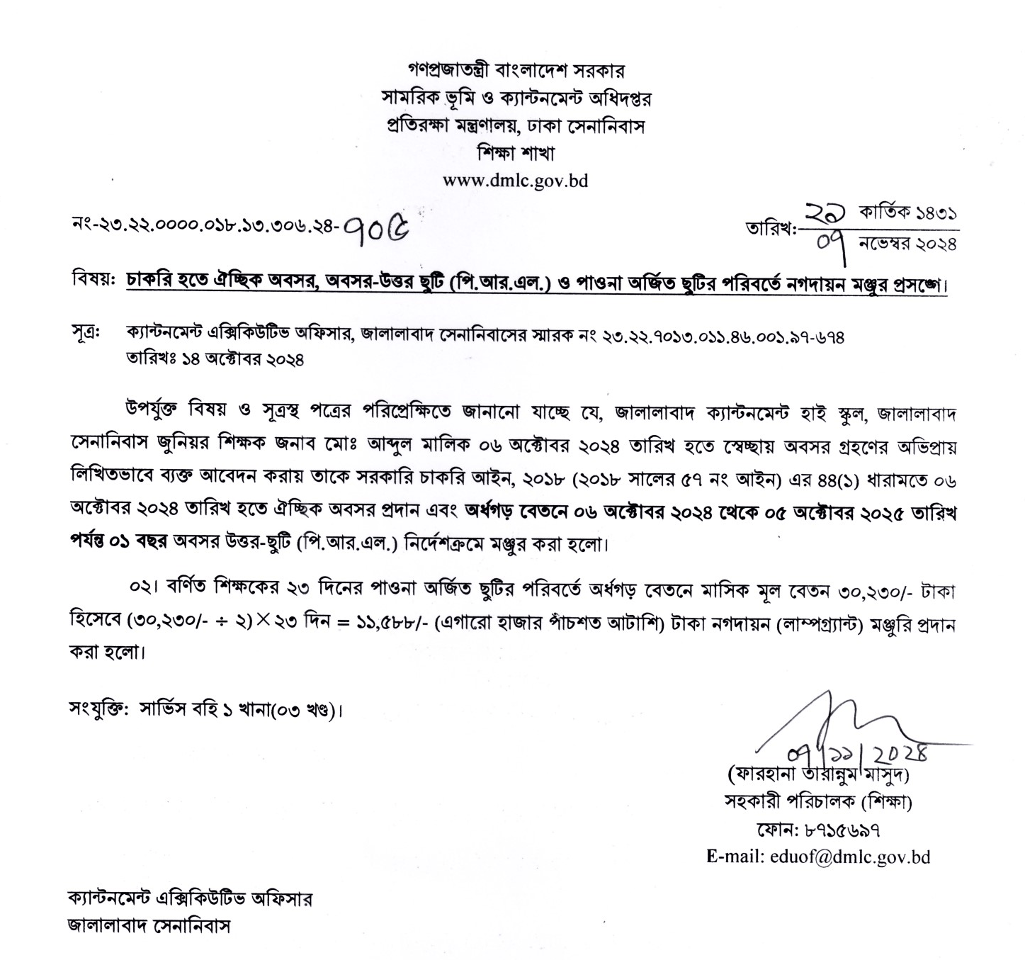 লাম্পগ্র্যান্ট মঞ্জুরীর বিধান ২০২৫ । যে সকল ক্ষেত্রে পাওনা ছুটি নগদায়ন করা যাবে না
