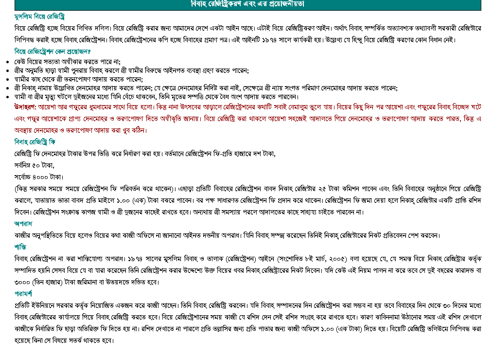 - ধাপ ২: কাজির সাথে যোগাযোগ- কাজির অফিসে গিয়ে আপনার বিয়ের তারিখ এবং সময় সম্পর্কে আলোচনা করুন। সাধারণত, কাজি তার অফিসের সময় অনুযায়ী বিয়ের আয়োজন করেন। যদি কোনো নির্দিষ্ট দিনে বিয়ে করতে চান, তাহলে আগে থেকে কাজির সাথে যোগাযোগ করে নেওয়া ভালো।