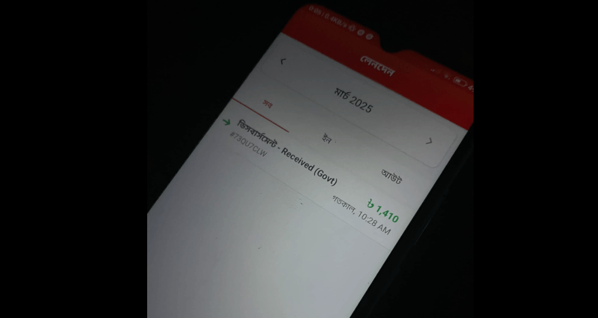 ঈদের আগে এ ভাতা প্রদান করা হলো/ সরকারি ভাতা সাধারণ নগদ একাউন্টে প্রেরণ করা হয়