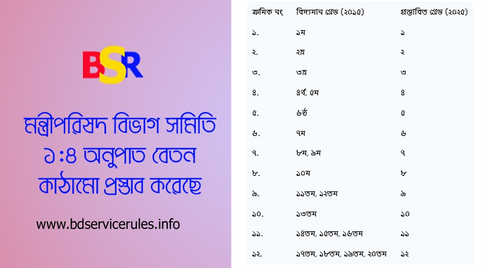 মন্ত্রিপরিষদ বিভাগ কর্মকর্তা-কর্মচারী কল্যাণ সমিতি কর্তৃক প্রস্তাবিত বেতন কাঠামো (গ্রেড ও অনুপাত)