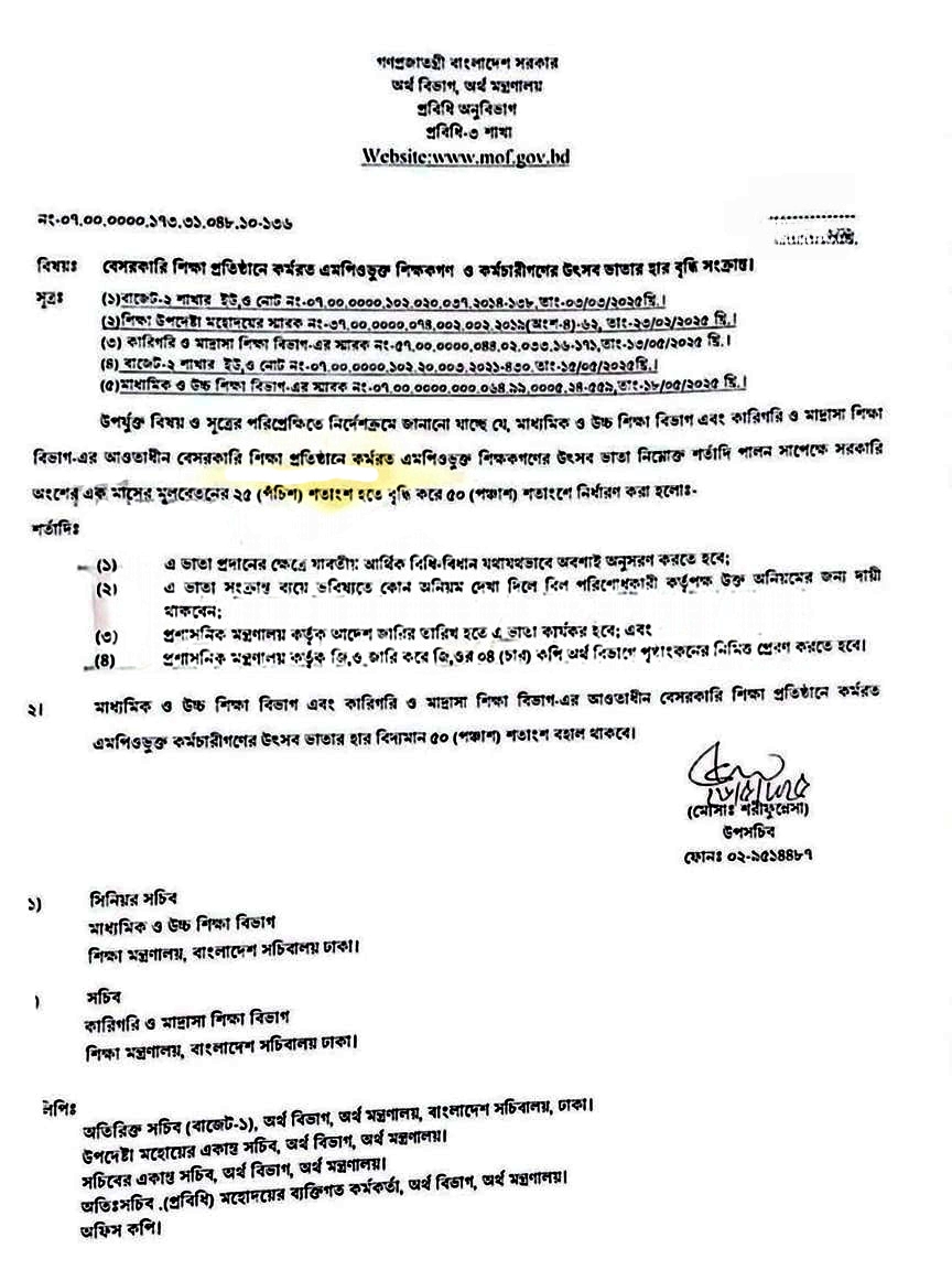 এমপিওভুক্ত শিক্ষক-কর্মচারীদের ঈদ বোনাস ২০২৫ । শিক্ষকদের উৎসব ভাতা ৫০% এ উন্নীত করলেও কর্মচারীদের বাড়েনি?