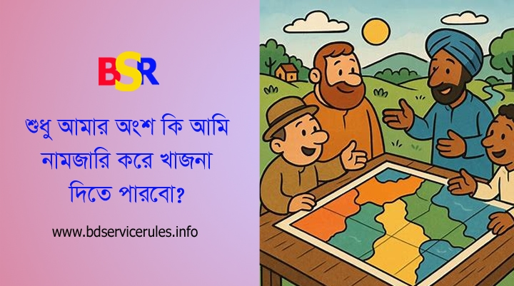 - যৌথ নামজারির সুযোগ: পরিপত্রে বন্টননামা ছাড়াই যে সরলীকৃত নামজারির সুযোগ দেওয়া হয়েছে, তা হলো যৌথ নামজারি (জমাভাগ ছাড়া)। এই প্রক্রিয়ায় মৃত ব্যক্তির মোট সম্পত্তির উপর সকল ওয়ারিশকে যৌথভাবে আবেদন করতে হবে এবং সকলের প্রাপ্য হিস্যা একটি মাত্র খতিয়ানে অন্তর্ভুক্ত হবে। যদি পরিবারের অন্য সদস্যরা আপনার সাথে যৌথ আবেদনটি করতেও রাজি না হন, তবে এই সরলীকৃত নামজারি প্রক্রিয়াটিও করা সম্ভব হবে না।