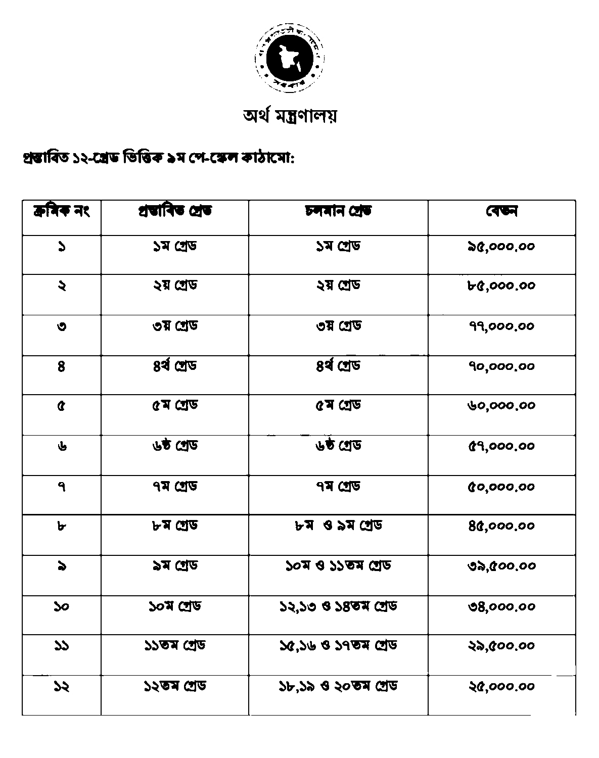 | ক্রমিক নং | প্রস্তাবিত গ্রেড | চলমান গ্রেড | বেতন |