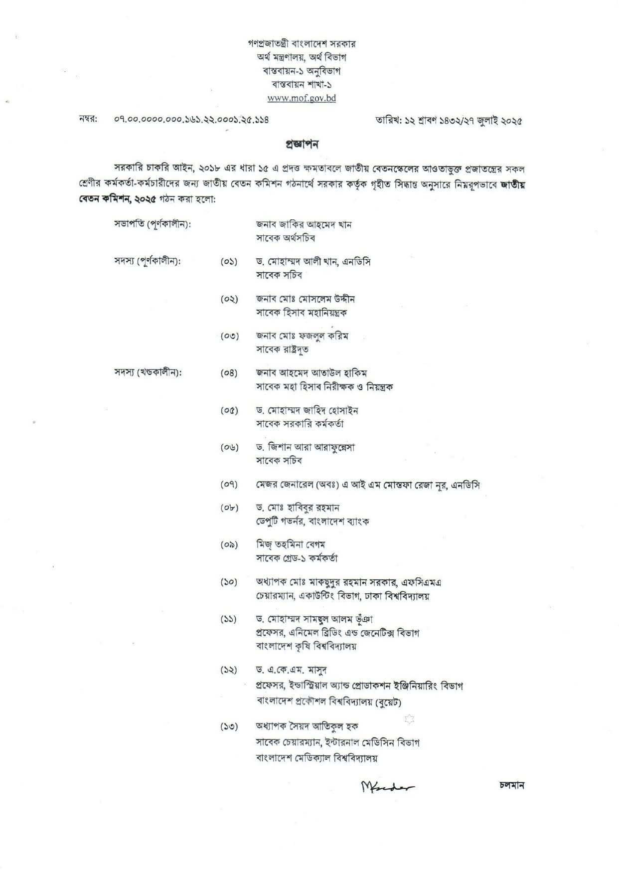 জাতীয় বেতন কমিশন ২০২৫ । সাবেক অর্থসচিব জনাব জাকির আহমেদ খান ছাড়া আর কে কে কমিনের সদস্য রয়েছে?
