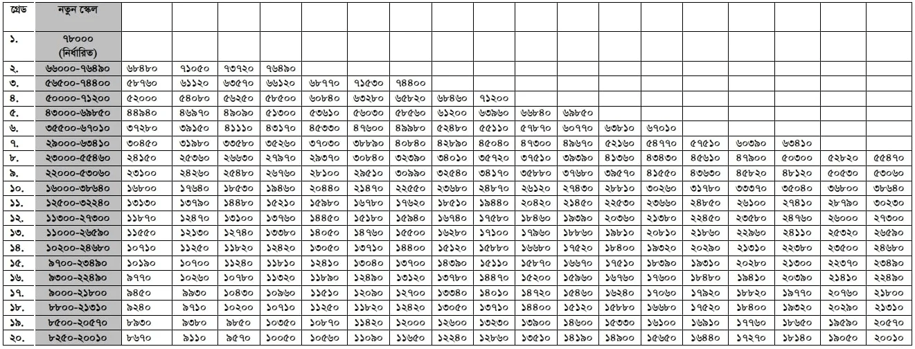 - ৬ষ্ঠ, ৫ম ও ৪র্থ গ্রেড: যথাক্রমে ৩টি, ২টি ও ২টি ধাপ বাড়ানো।