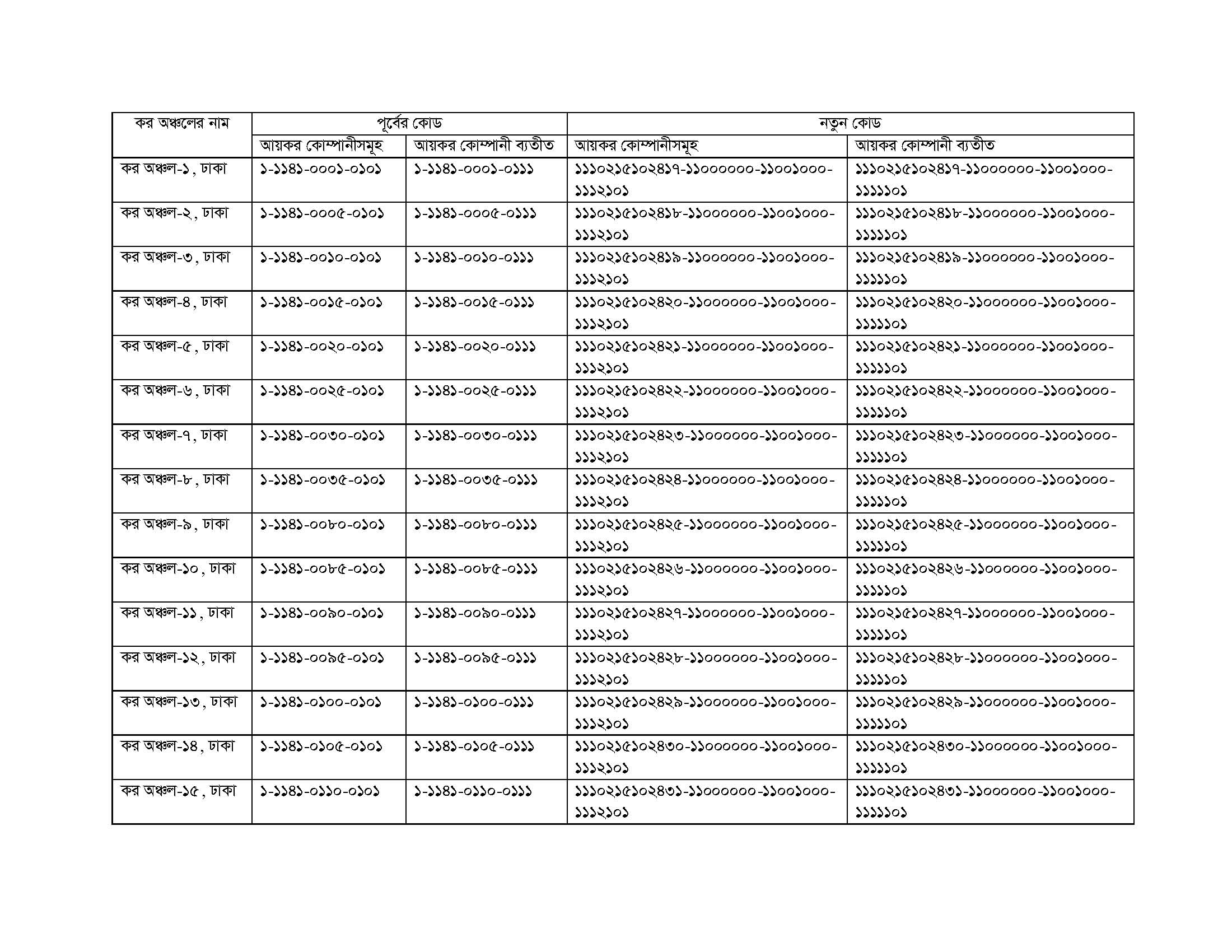 কোম্পানী ব্যতীত নতুন কোড ২০২৪ । কর অঞ্চল মোতাবেক আয়কর জমার চালান কোড দেখুন