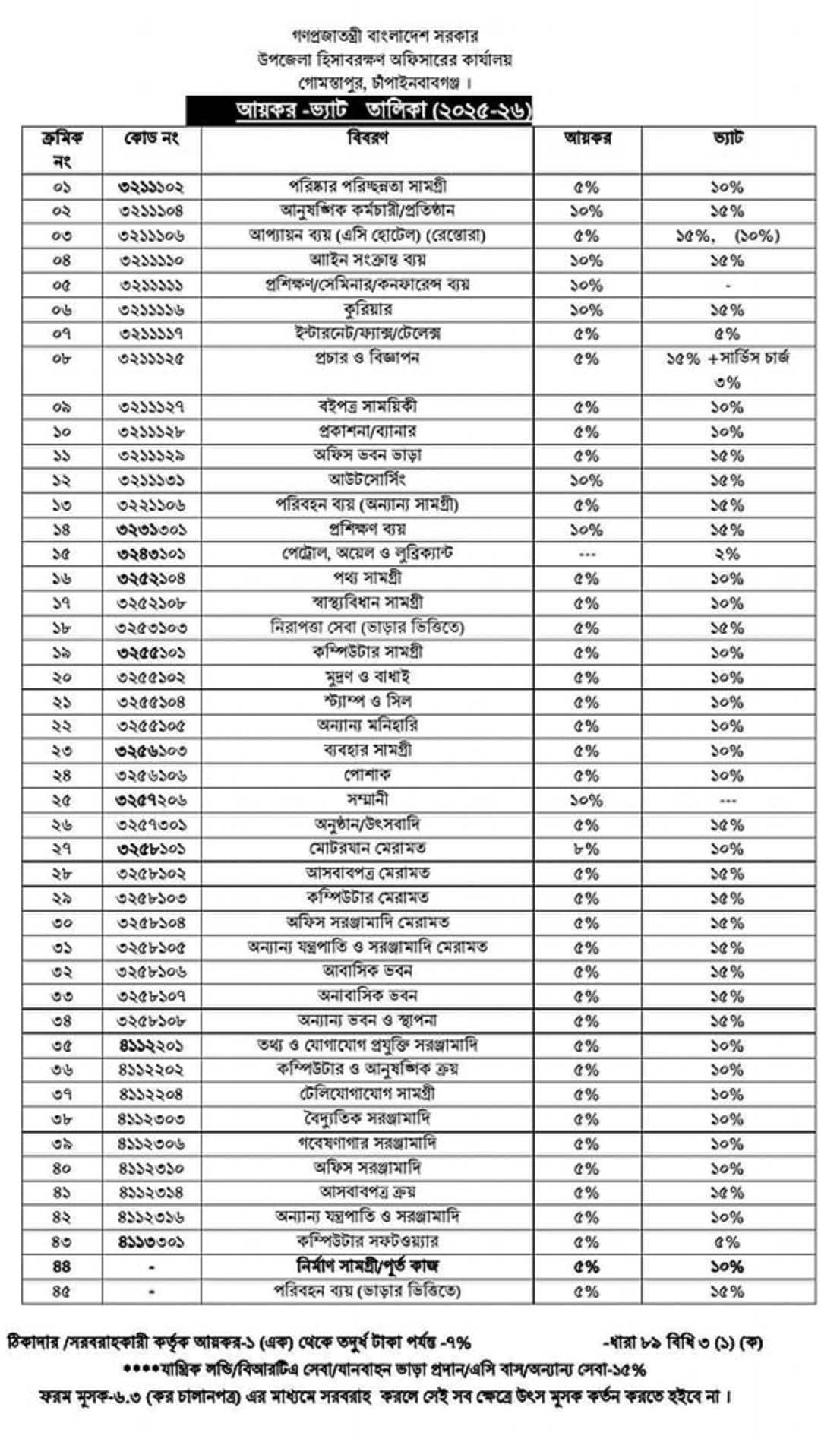 নতুন ভ্যাট তালিকা ২০২৫ । আয়কর ও ভ্যাট কর্তনের হার ২০২৪-২০২৫ সংশোধিত রেট কত?