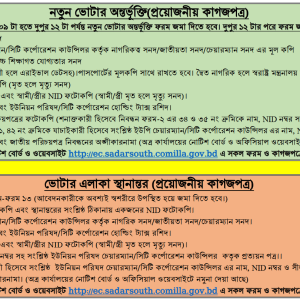 নতুন ভোটার অন্তর্ভূক্তি ও NID নিবন্ধনের জন্য প্রয়োজনীয় কাগজপত্র