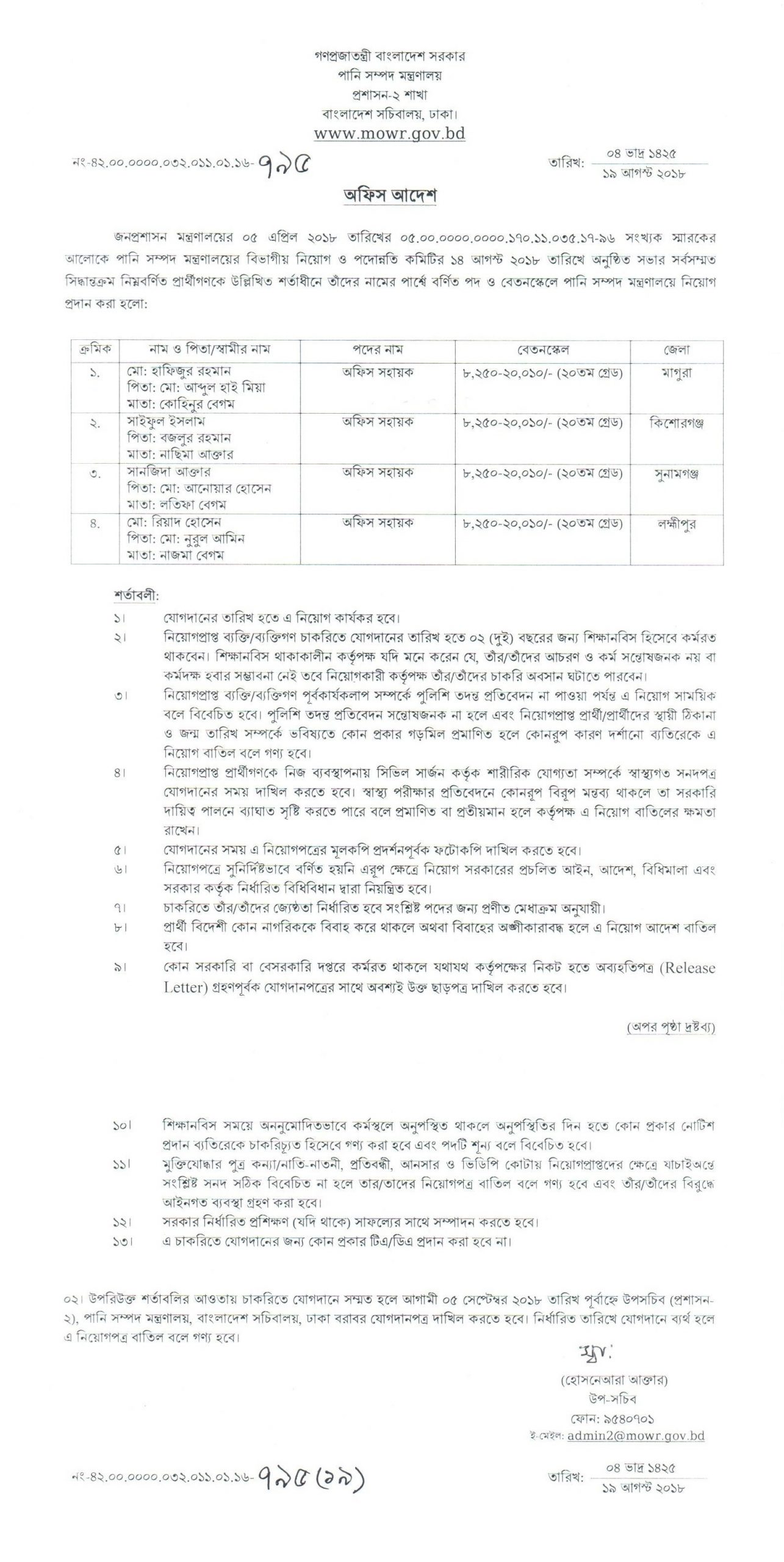 অফিস সহায়ক পদে নতুন জয়েন্ট করলে