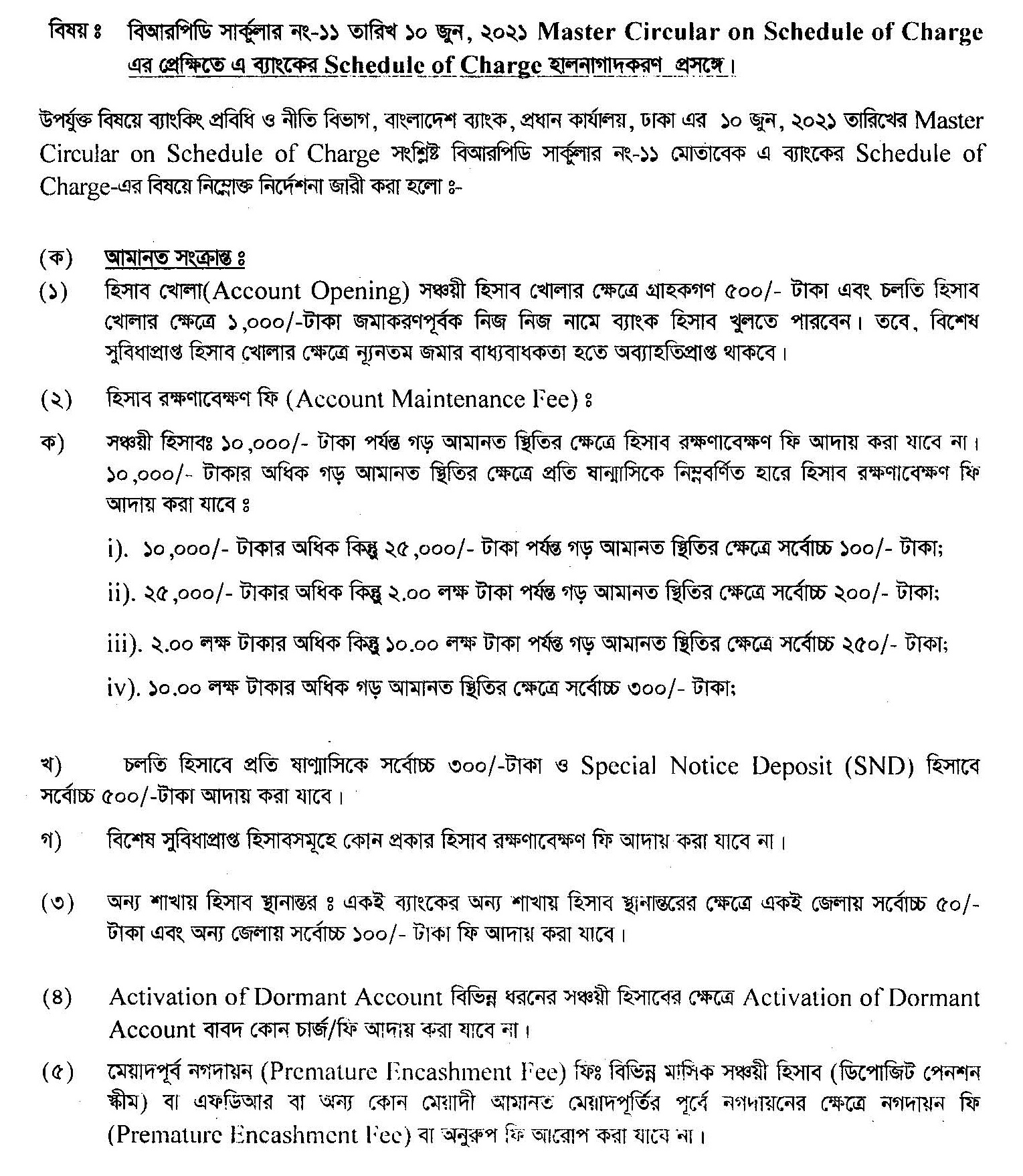 একই জেলার অন্তর্ভুক্ত শাখার মধ্যে লেনদেনের ক্ষেত্রেও একই সার্ভিস চার্জ প্রযোজ্য।