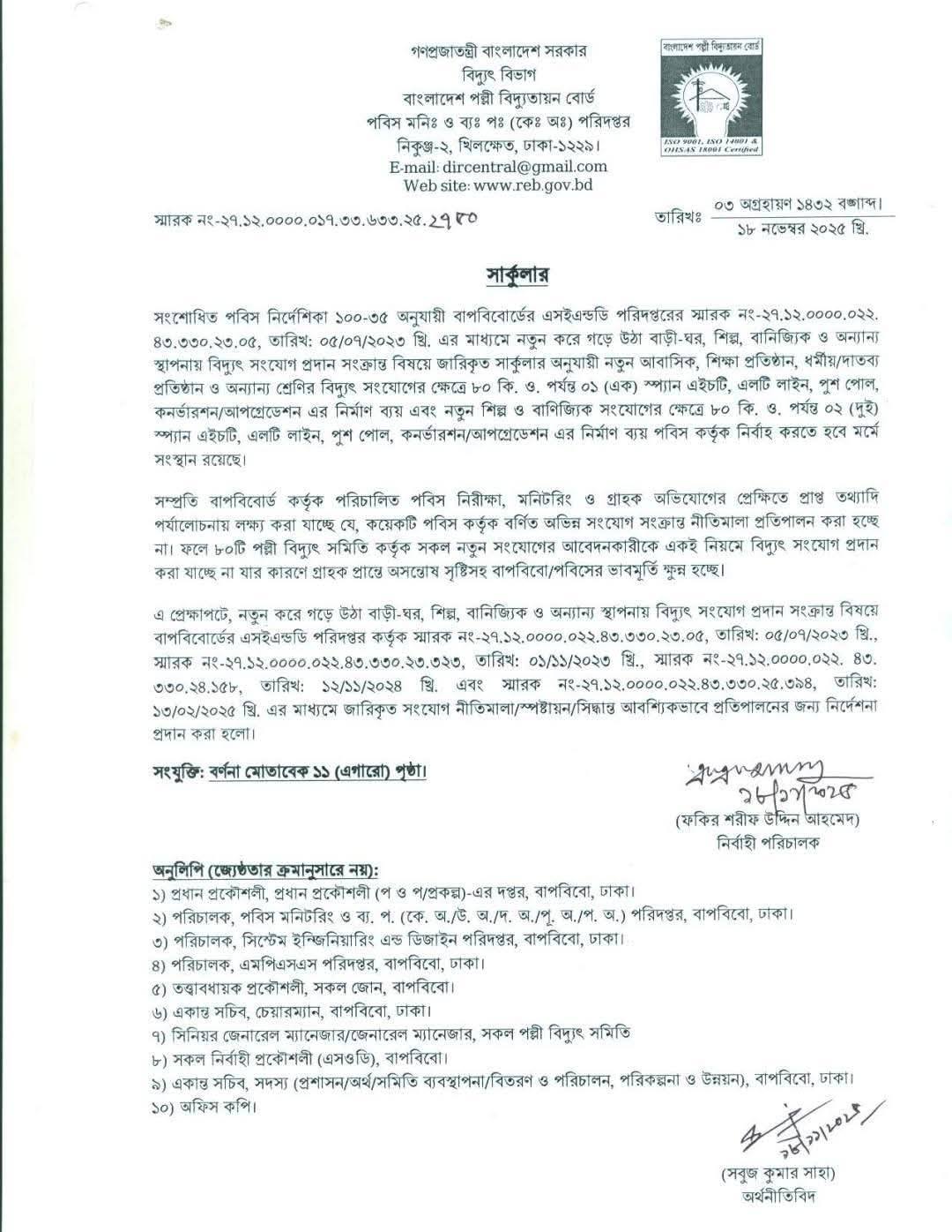 সম্প্রতি কয়েকটি পবিস কর্তৃক বর্ণিত অভিন্ন সংযোগ সংক্রান্ত নীতিমালা প্রতিপালন না করার কারণে গ্রাহক অসন্তোষ সৃষ্টিসহ বাপবিবো/পবিসের ভাবমূর্তি ক্ষুণ্ন হচ্ছে 26। এ প্রেক্ষাপটে, বাপবিবোর্ডের এসইএন্ডডি পরিদপ্তর কর্তৃক জারিকৃত সংযোগ নীতিমালা/স্পষ্টায়ন/সিদ্ধান্ত আবশ্যিকভাবে প্রতিপালনের জন্য সংশ্লিষ্ট সকল পল্লী বিদ্যুৎ সমিতিকে (পবিস) কঠোরভাবে নির্দেশনা প্রদান করা হয়েছে । এই সকল তথ্য গ্রাহকদের জানা থাকলে হয়রানি এড়ানো এবং হয়রানি মুক্ত সেবা নিশ্চিত করা সহজ হবে।
