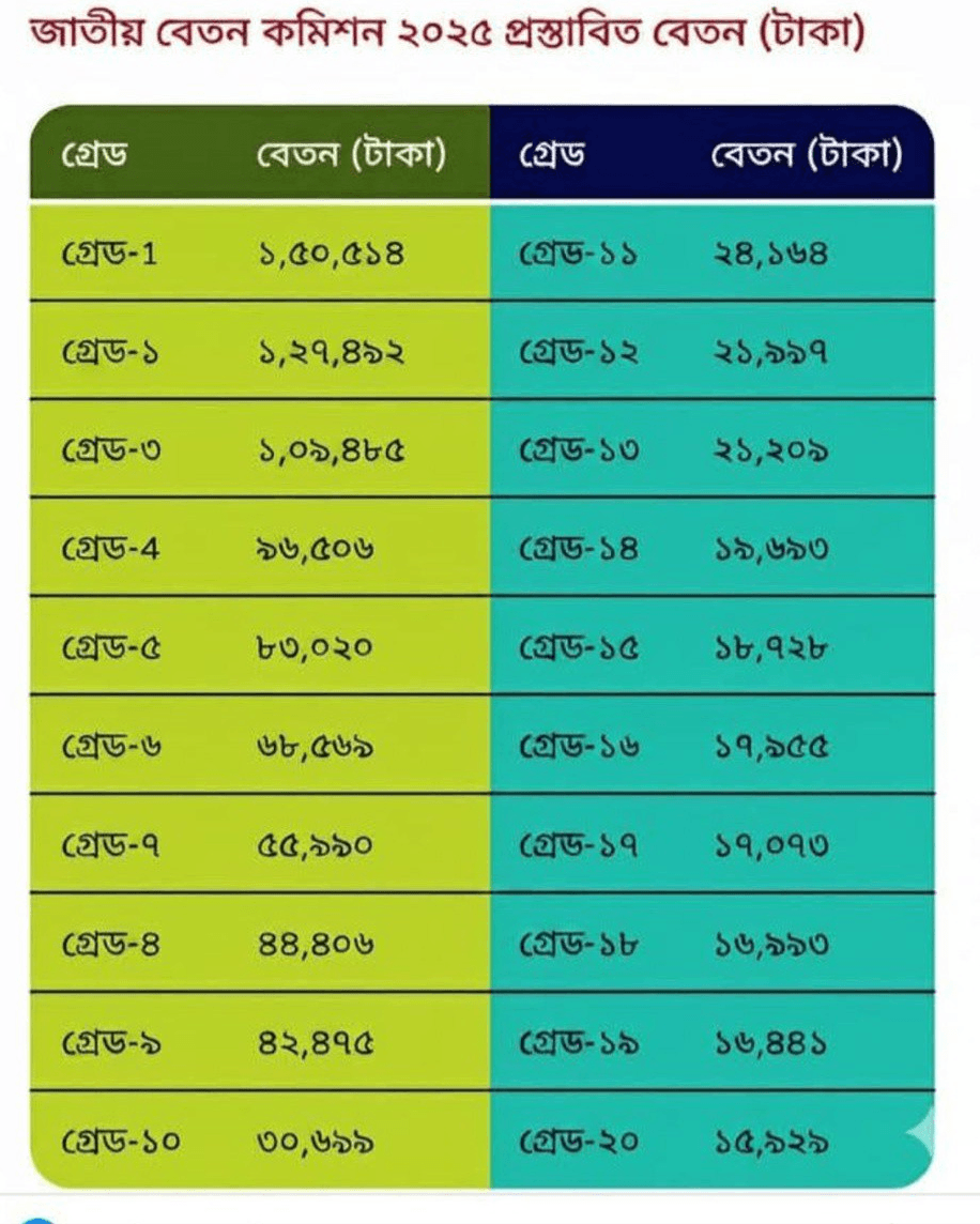 - সংগঠনের দাবি: ‘১১-২০ গ্রেড সরকারি চাকুরিজীবী ফোরাম’-এর মতো সংগঠনগুলো ১:৪ বা ১:৬ অনুপাতে নতুন পে স্কেল কার্যকর করার দাবি জানিয়েছে। তাদের প্রস্তাব অনুযায়ী, সর্বোচ্চ ও সর্বনিম্ন বেতনের অনুপাত কমালে নিম্ন গ্রেডের কর্মচারীদের জীবনযাত্রার মান উন্নত হবে এবং গ্রেডভিত্তিক বৈষম্য কমবে।