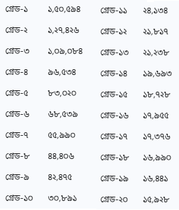 প্রকাশিত খসড়া প্রস্তাব অনুযায়ী, গ্রেডভিত্তিক মূল বেতনের চিত্রটি ছিল নিম্নরূপ: